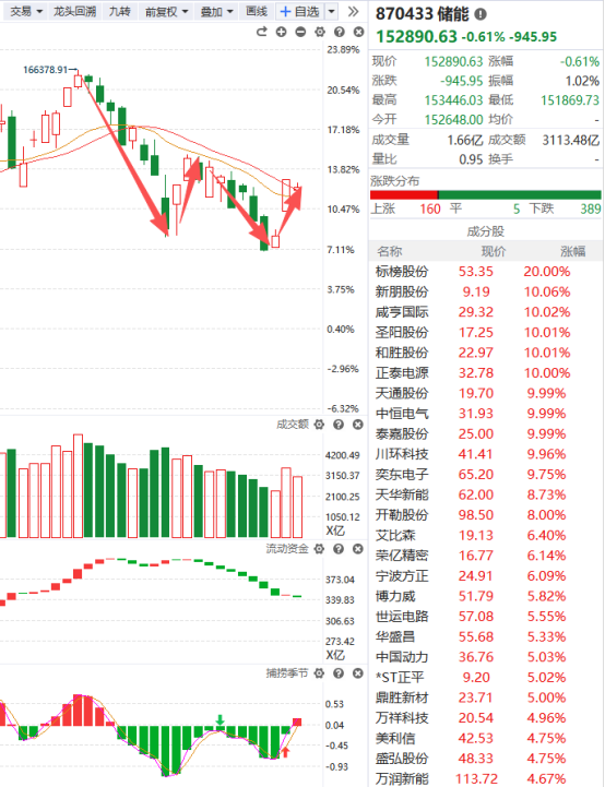 储能概念昨天在市场情绪好转的背景下直接跳空高开并上穿智能辅助线,但今天市场情绪有所降温,先保持观望,等更多积极信号出现再介入。