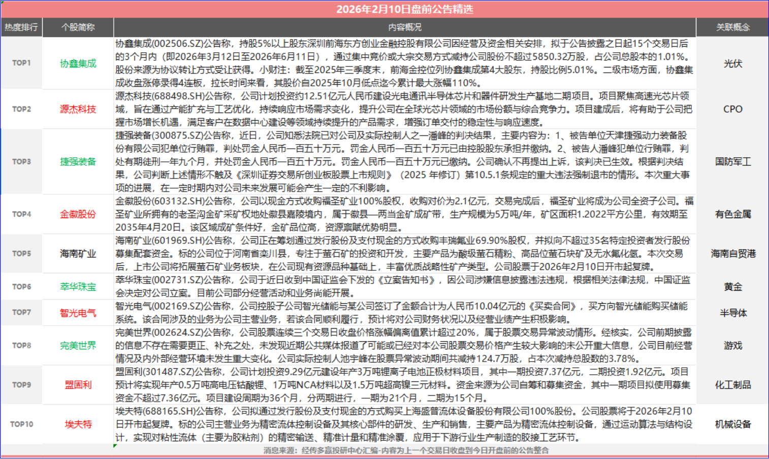 协鑫集成(002506.SZ)公告称,持股5%以上股东深圳前海东方创业金融控股有限公司因经营及资金相关安排,拟于公告披露之日起15个交易日后的3个月内(即2026年3月12日至2026年6月11日),通过集中竞价或大宗交易方式减持公司股份不超过5850.32万股,占公司总股本的1.01%。股份来源为协议转让方式受让获得。小财注:截至2025年三季度末,前海金控位列协鑫集成第4大股东,持股比例5.01%。二级市场方面,协鑫集成收盘涨停录得4连板,拉长时间来看,其股价自2025年10月低点迄今累计最大涨幅110%。