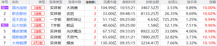 焦点股方面,上海微电子概念股华建集团9天5板,零售板块国光连锁3连板,低价股大有能源4天3板、渤海汽车6天3板,可控核聚变概念股中国核建5天3板。。