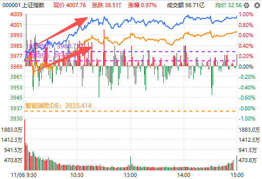今天市场全天震荡走强,大盘重回4000点,个股涨多跌少,超2900只个股翻红上涨。量能小幅放大,两市全天成交额2.06万亿,较上一交易日放量1829亿。板块方面,热点轮动较快,昨日领涨的智能电网板块分化,部分活口晋级3板,中能电气等多股冲高回落;电解铝、燃气轮机、化工等板块活跃,AI硬件午后走强,寒武纪涨超9%。下跌方面,海南板块、冰雪产业、影视等板块走弱。