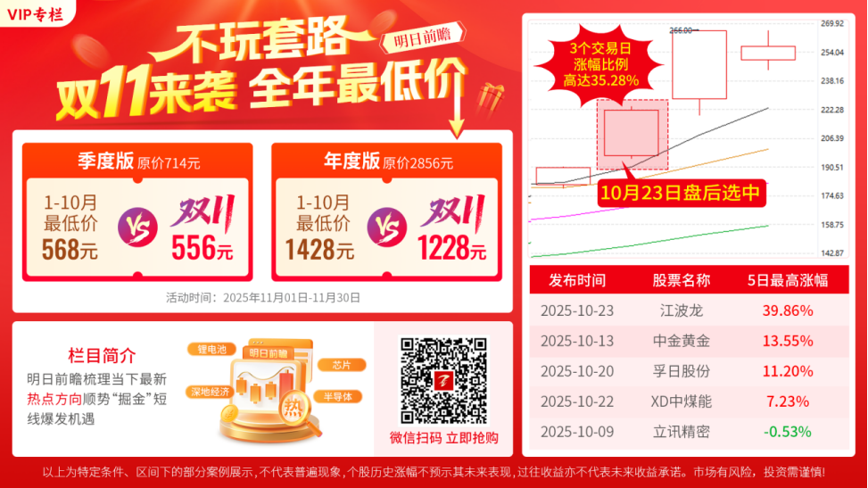 指数再度站上4000点,牛市持续演绎,下一个热点风口正蓄势待发!题材轮动太快不知道如何布局?《明日前瞻》栏目以深度市场研究为根基,用专业视角拆解热点逻辑,帮你在复杂行情中找准主线、锁定潜力标的!想要狙击短线热点的朋友,双11全年最低价千万不要错过了!