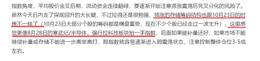 指数角度,昨晚复盘文章已经提示过,周一下午指数的大长腿,虽然和10月23日一样是科技大票和存储芯片带动指数共振反弹,但存储板块的筹码结构已经完全不一样了,尾盘的拉升反而更接近8月28日的半导体/寒武纪,今天也如期出现补跌。