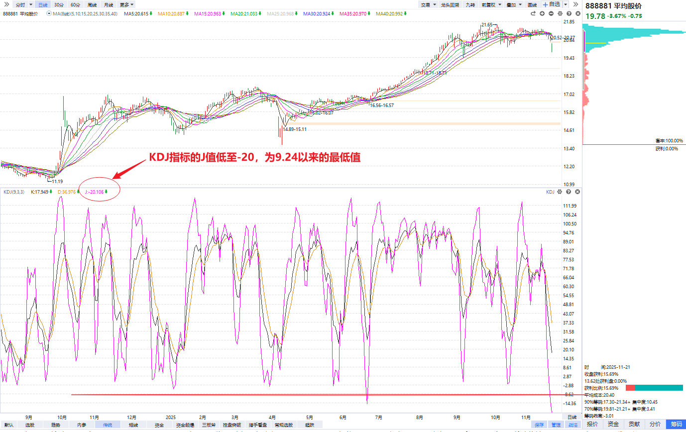虽然大部分指数的趋势都走得比较难看了,不过纯短期角度,上证、平均股价等各大指数的KDJ指标J值均以降至9.24行情以来的最低点(比如平均股价的J值已经低至-20),说明短线已经由于恐慌情绪大幅超卖,所以尽管中线趋势的拐点还不好确认,但短线很可能在1-2个交易日内迎来一波报复性的情绪反弹。当然因为各大指数作为中线趋势线的60日线被跌破,反弹仅适合作为逢高减仓的节点,不适合盲目抄底进场,不过起码还有持仓的也没太大必要卖在恐慌低点。