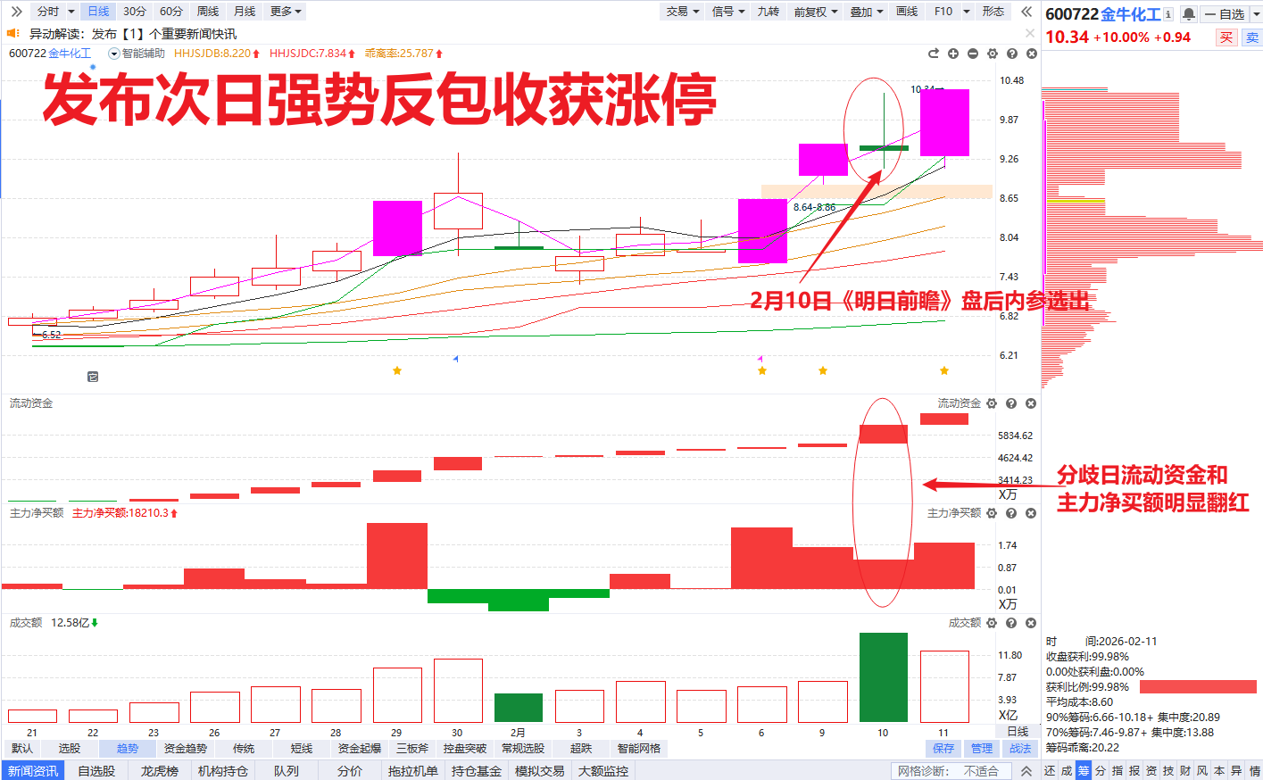 今天化工资源股强势大涨,恭喜咱们的《明日前瞻》栏目紧跟节奏擒牛!栏目内参周二晚选出的2只化工概念股金牛化工和百川股份,发布次日双双收获强势涨停!
