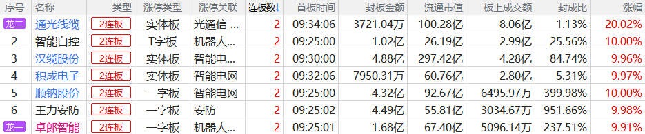 焦点股方面,电力、电网板块强者恒强,汉缆股份10天6板,华银电力6天3板,通光线缆20CM2连板。涨停梯队来看: