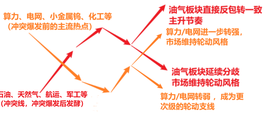 虽然今天大A走了个超跌反弹,盘面上四千家上涨,但整体还是轮动局面,没有明显的主线,包括今天爆发的MLED概念,明天能不能走出持续性都还要再看。整体结构还是昨天提到的算力/电网和油气线的跷跷板,但受消息面的影响太大了,油气低开后早盘智能电网、CPO这些都有强发酵,但午后油气一拉虹吸资金就又全下去了,全市场都要看油气板块的脸色但偏偏油气板块基本没有内在强度只能靠消息面随缘涨跌 ,这就导致整个市场都找不到一个稳定的情绪锚点。后面还是需要等市场多油气板块的影响逐渐钝化下来以后,才比较容易有稳定的结构和趋势。