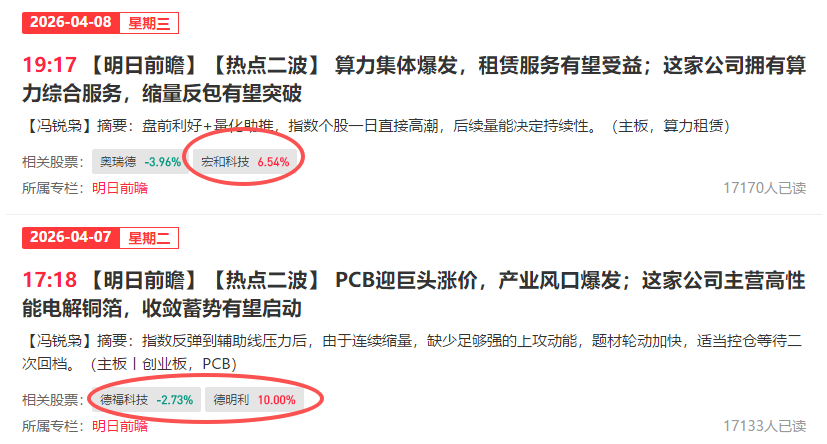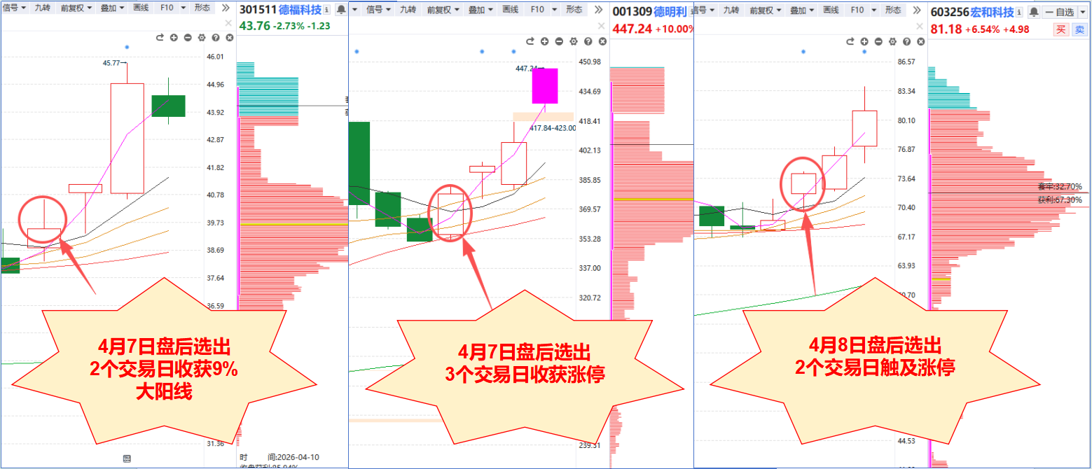 - 4月7日晚内参选出PCB概念德福科技,发布后2个交易日内收获9%大阳线!