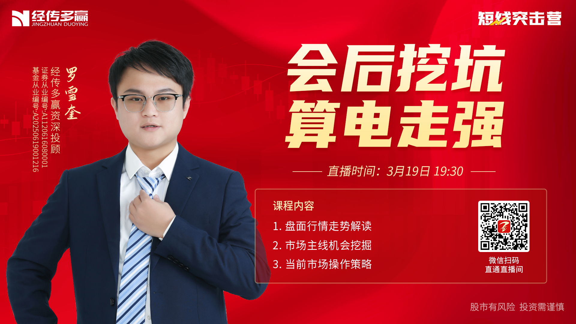 张明科 职业编号:A1120619100001, 张明科,从事金融研究、证券分析多年,对主力操盘行为有很强的认知,熟悉中小投资者的操作和心理特点,擅长用资金推动论和波段理论把握短线、中线个股。 市场见解:顺应趋势,把握资金流向,才能较为轻松在大势中获利。