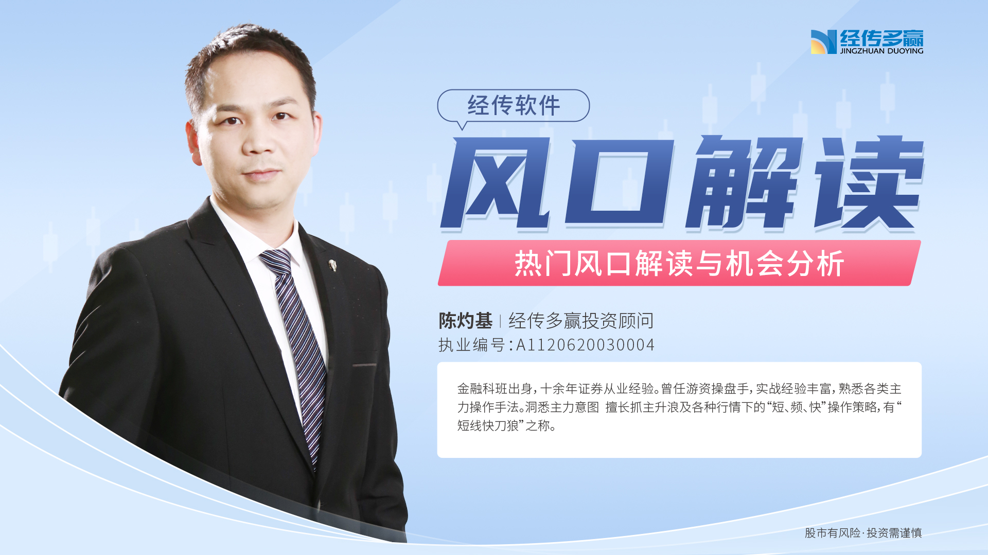 梁洁云  职业编号:A1120619060027, 梁洁云,股票经验11年,证券从业7年,持证理财规划师。了解散户操作弱点,产品教学喜欢追根溯源,课程讲解深入浅出。偏好细分行业研究和引导个股精选,也热衷交易技巧钻研并推崇身边经济学。