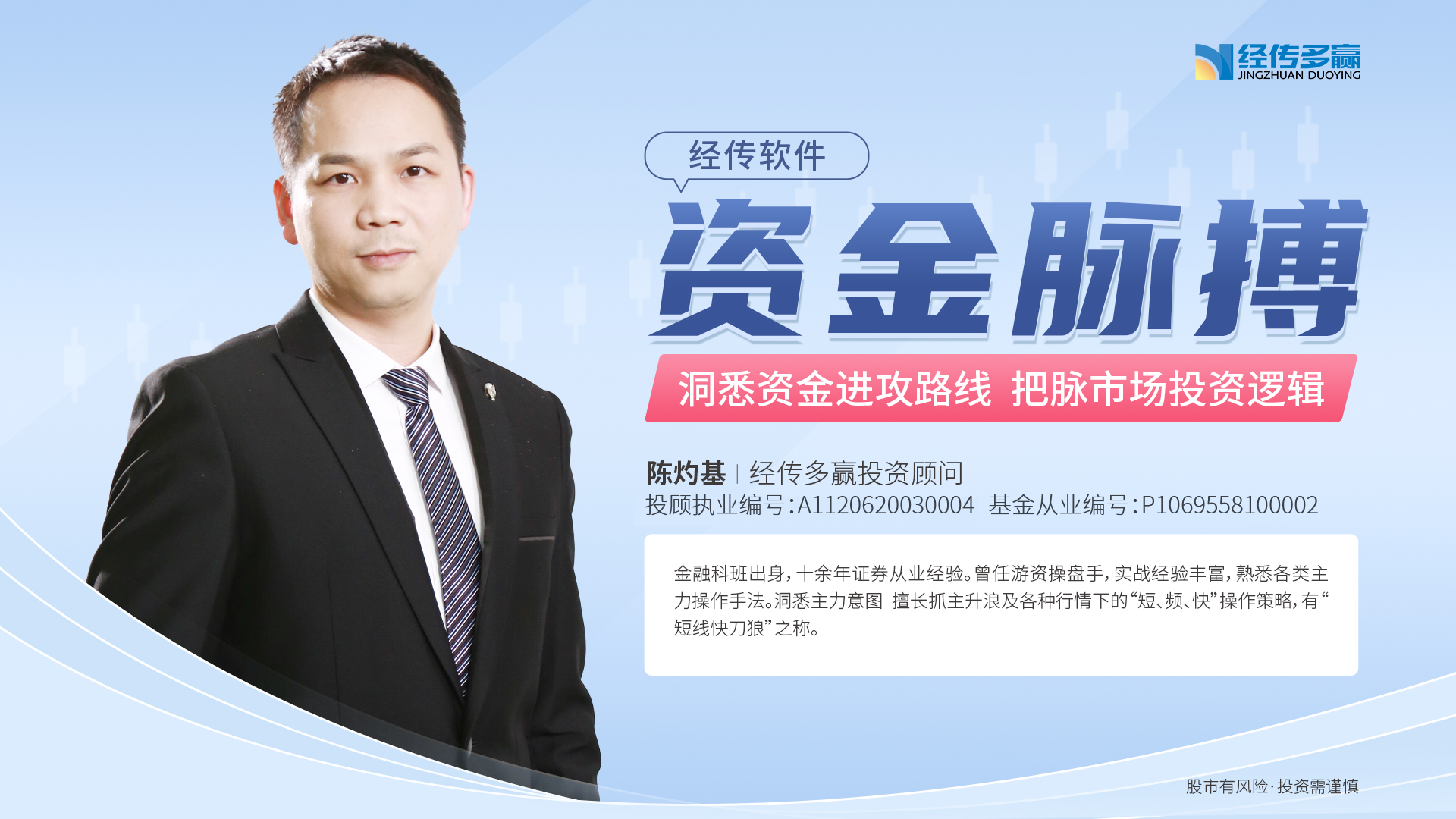 何祖光 职业编号:A1120625040003, A股市场老手,历经牛熊,形成以价值趋势为核心的投资系统,个人擅长“中线控盘”、“资金行为”、“机构思维”,从实战的角度出发,剖析市场投资逻辑,然后顺“势”而为,站在赚钱的一方。