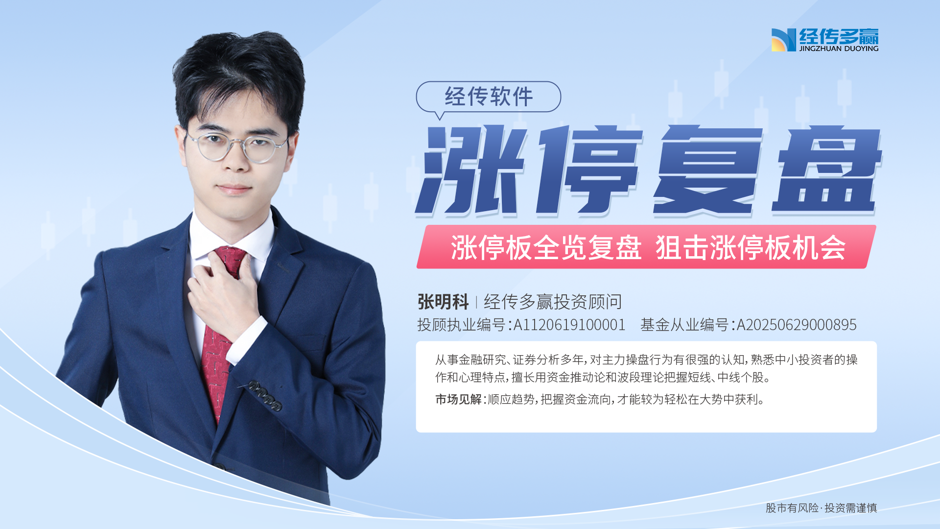 梁洁云  职业编号:A1120619060027, 梁洁云,股票经验11年,证券从业7年,持证理财规划师。了解散户操作弱点,产品教学喜欢追根溯源,课程讲解深入浅出。偏好细分行业研究和引导个股精选,也热衷交易技巧钻研并推崇身边经济学。
