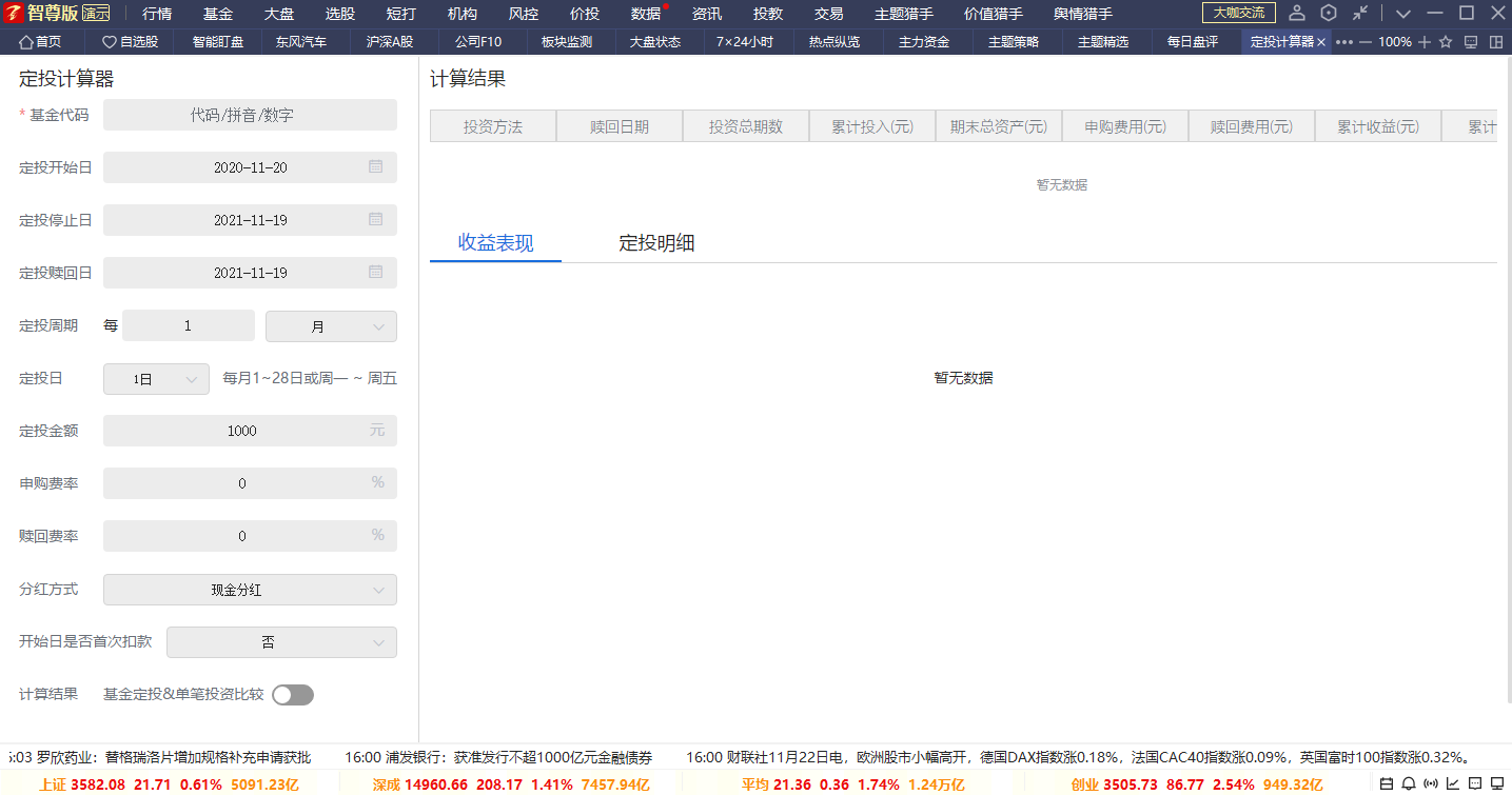 定投金额(默认为1000元):设置目标基金的定投金额;