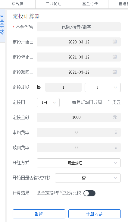 定投周期(默认为1月):设置目标基金定投的周期;