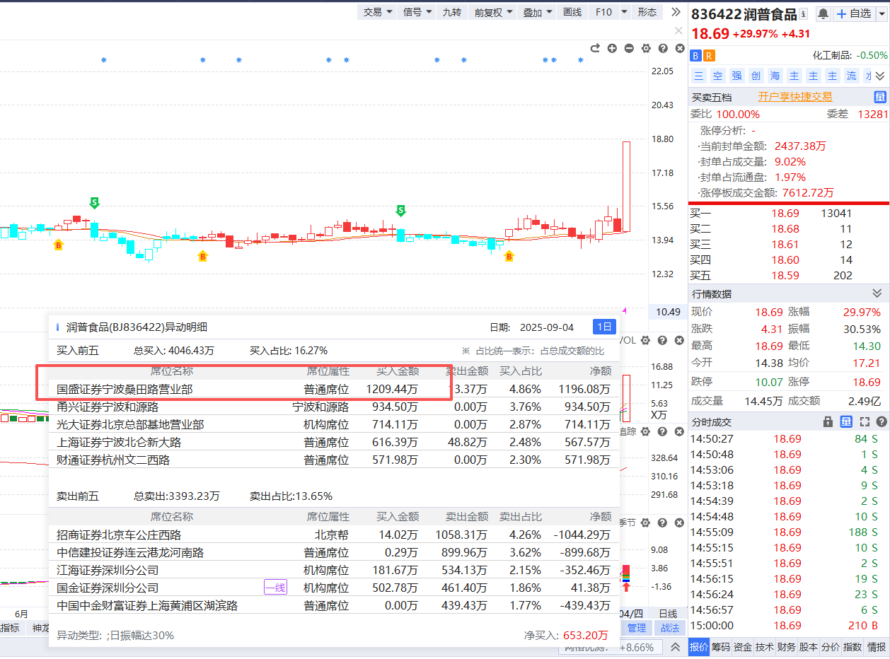 简介:95后新生代游资,尤其擅长主线题材的创业板、北交所弹性个股,24年该席位出现在北交所天马新材龙虎榜买一后声名大噪。近期在回盛生物、秋乐种业、华光源海均有斩获。