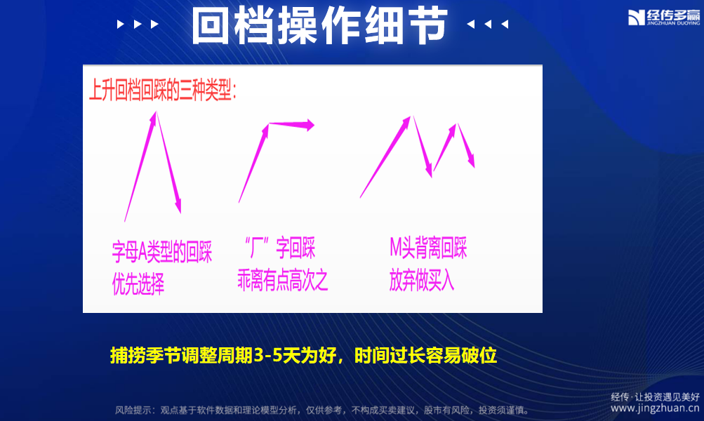 涨停回踩当中的细节,也给大家强调一下,因为是短线操作,找的是短线涨停强势股,所以回档调整周期3-5天内为好,调整时间过长容易出现破位预期。