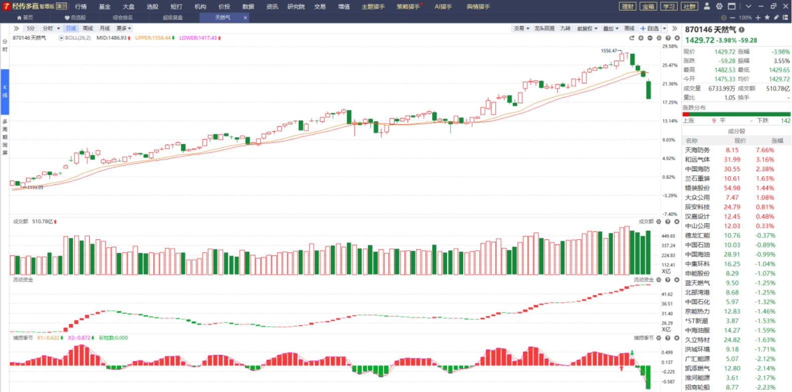 随着指数的持续下跌我们要特别留意前期有表现近期超跌的板块,他们随时都有可能爆发出超跌反弹行情,而从它的指标来看,即使跌幅这么大也有资金持续流入,说明它后续上涨的潜力还是比较大的,可持续关注。