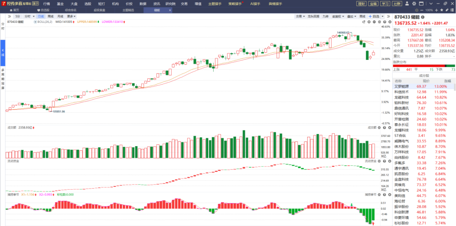 随着市场情绪的好转以及指数的反弹,前期一些调整比较大的板块都迎来不同程度的反弹行情,趋势也慢慢地由弱转强,储能所处的位置比较低也展开了反弹行情,而且捕捞季节已经率先收出金叉,只要指数能维持震荡上涨行情,那么它就有可能迎来反弹行情,可持续关注。