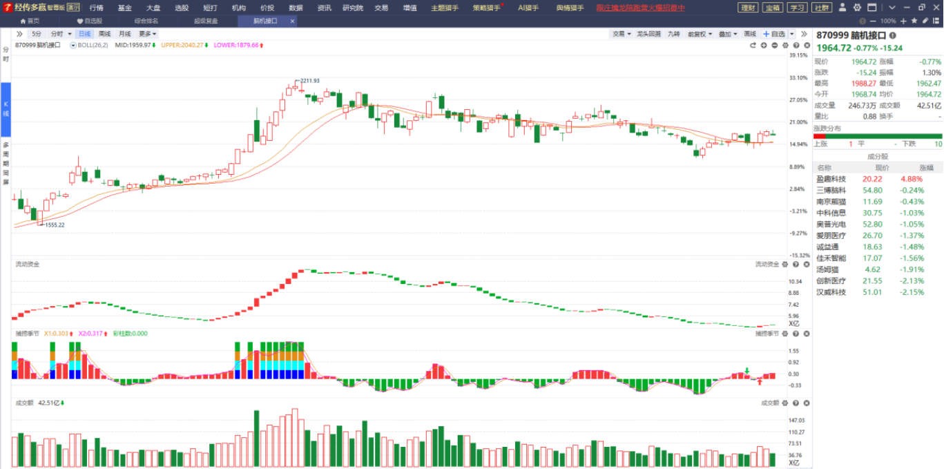 脑机接口作为科技板块的分支受近期科技回暖迎来了不错的反弹行情,捕捞季节收出金叉,但正如我前面说的,现在指数的确定性趋势还没有走出来,还存在不小的变数,想参与的倒是可以趁它位置比较低的时候低吸入场,留个底仓博反弹就行了,千万不要以为万事大吉了,而重仓介入。
