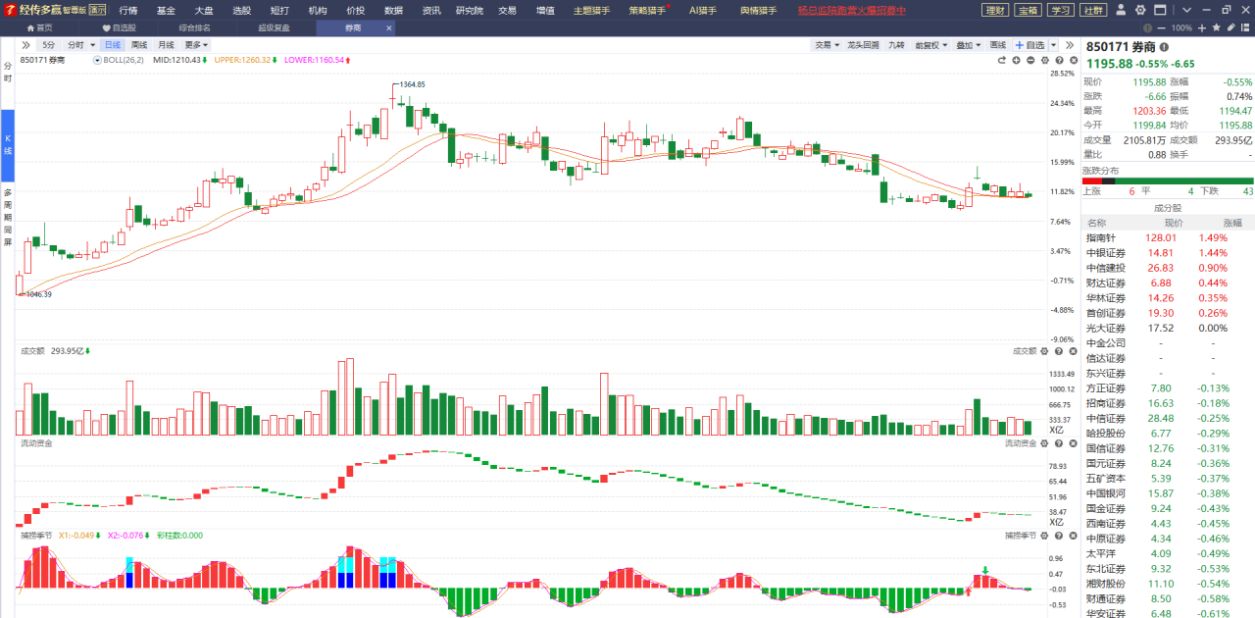 随着指数持续震荡下跌,让市场的悲观情绪渐浓,指数也快跌至3800点整数关口,虽然市场的情绪逐渐悲观,但反弹行情往往不就是在悲观的时候酝酿出来的吗?一旦市场情绪开始回暖,有着市场“晴雨表”之称的券商肯定会率先异动拉升,短期看它能否在辅助线得到支撑。
