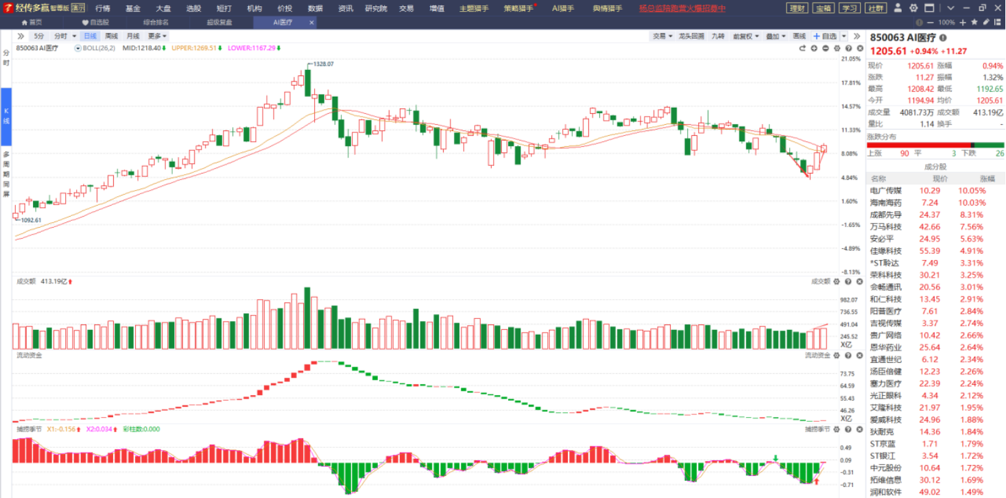 AI医疗处于刚突破辅助线压制的阶段,而成交量、流动资金、捕捞季节等各项指标也表现得不错,这是支撑它继续上涨的最大依仗,而且它同时具备科技+医疗双重属性,在国家政策和行业技术的持续催化之下,它有望进一步上涨,可耐心关注它后续上涨行情。