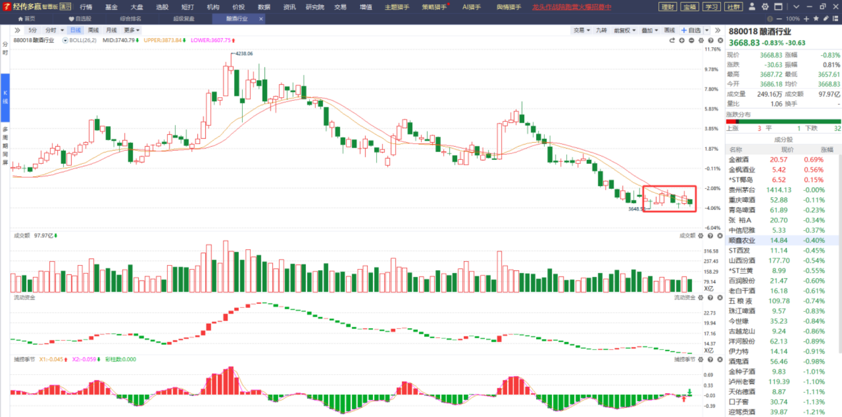 酿酒板块现在最大的优势就剩下低位跟估值偏低了,至于走势跟指标方面不值得一提,也没有什么亮眼的地方,就看看它能否在“元旦”来临之际迎来一波爆发行情,而它现在所处的位置对喜欢白酒的人来说是非常友好的,因为它的位置足够低,不过在这个竞争非常激烈的市场中,白酒好像又没有很强的竞争力,所以导致它一直处于一个非常尴尬的位置,曾经的权重龙头,现在却沦落到“无人问津”的地步,令人唏嘘。