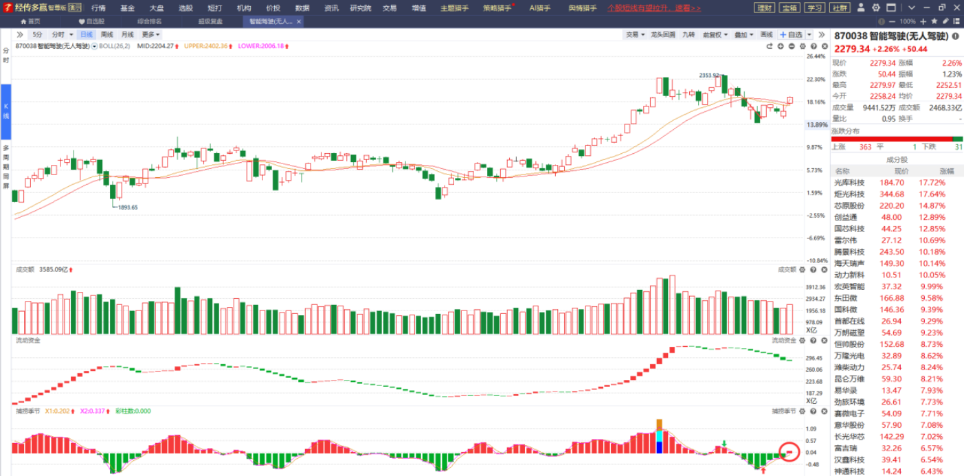 无人驾驶板块在底部止跌企稳并强势站上辅助线上方,捕捞季节收出金叉,信号跟趋势都处于“弱转强”的初期,而且该方向未来的成长空间还是挺大的,对该方向感兴趣的可以积极关注起来。