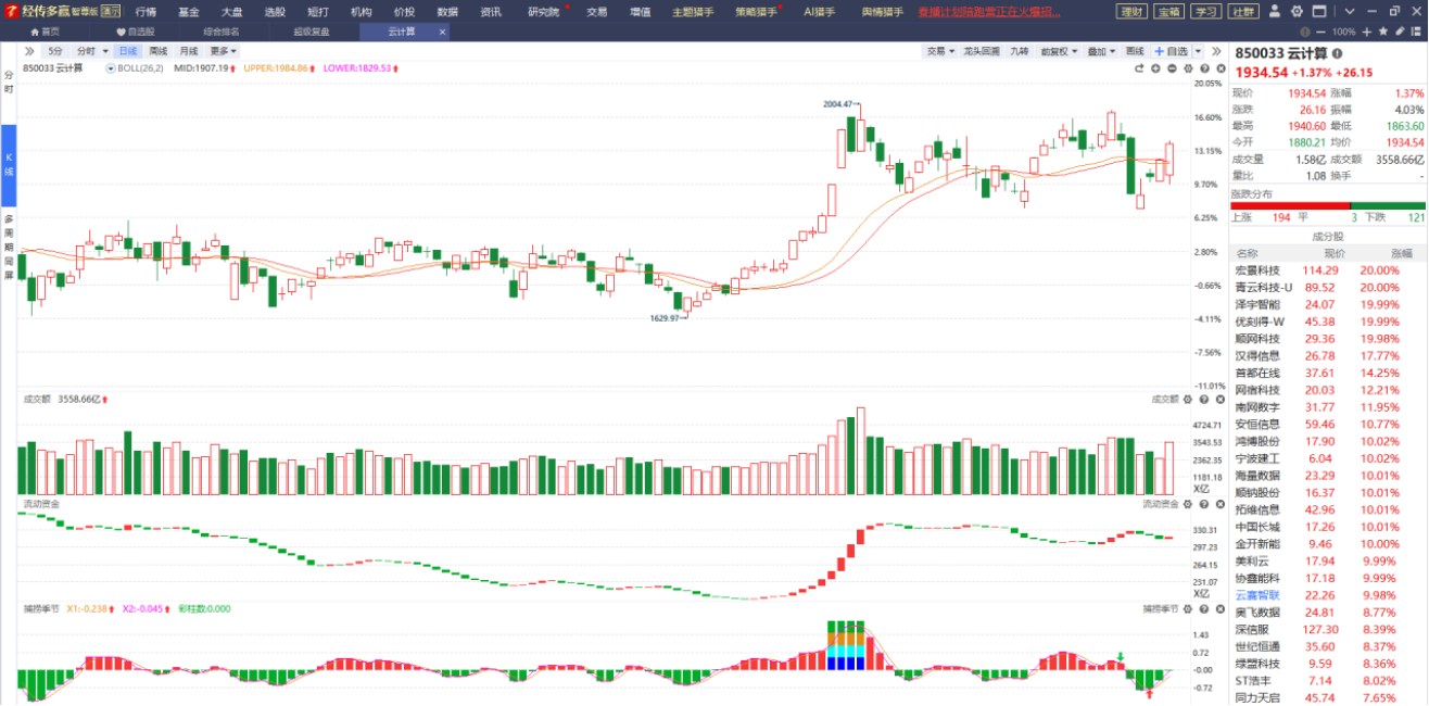 最近刮起一股“全民养龙虾”的风,而这里的“龙虾”指的是一款智能可以部署在个人电脑上的AI代理,由于采用了“龙虾”图标设计,而使用那款软件的人被人调侃“养龙虾”,而在股票市场上它最大的受益板块是云计算,目前它正处于突破辅助线压制的关键时刻,成交额呈放量状态,流动资金翻红,捕捞季节收出金叉,一旦某个事物火起来之后随之而来的就是各种争议,现在关于它的负面消息也不少,像成本过高,不安全等等一些争议就出现了。所以,想布局该方向的不妨观望一下,毕竟新事物的诞生会让大家产生“猎奇”心理,至于真实情况到底是怎样还需要经过时间的考验。