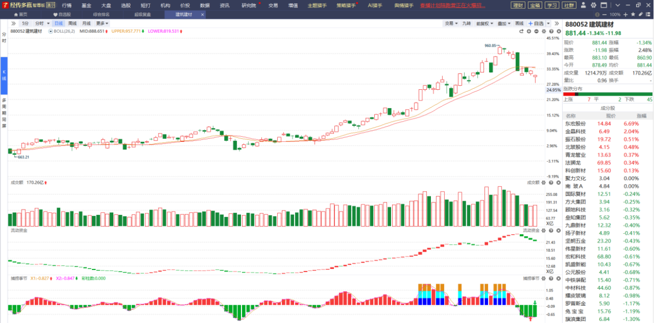 建筑建材方向昨天收出一根“大长腿”具备止跌企稳的迹象,但看各种指标信号会发现,它并不是很乐观,对该方向感兴趣的可以先保持观望,等更多好转信号出现之后再做打算。