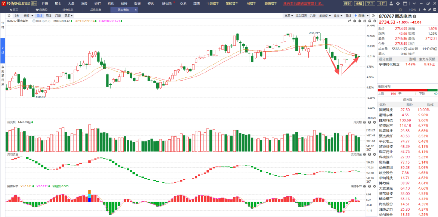 固态电池板块目前正处于突破辅助线压制的关键时刻,不过鉴于目前各项指标的表现以及市场的动荡节奏,它能否冲破辅助线的压制还存在一定变数,耐心等待吧!