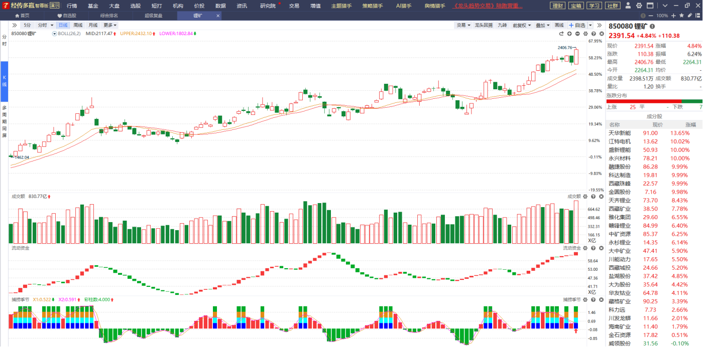 锂矿上周五迎来较大的反包行情且收出历史新高,趋势跟指标方面没有太大的问题,唯一需要担心的是大幅上涨是否会提前消耗它的上涨潜力导致后继上涨无力从而进行调整,对该方向感兴趣的切勿追高进场,可以在它调整并没有破位的情况下积极介入。