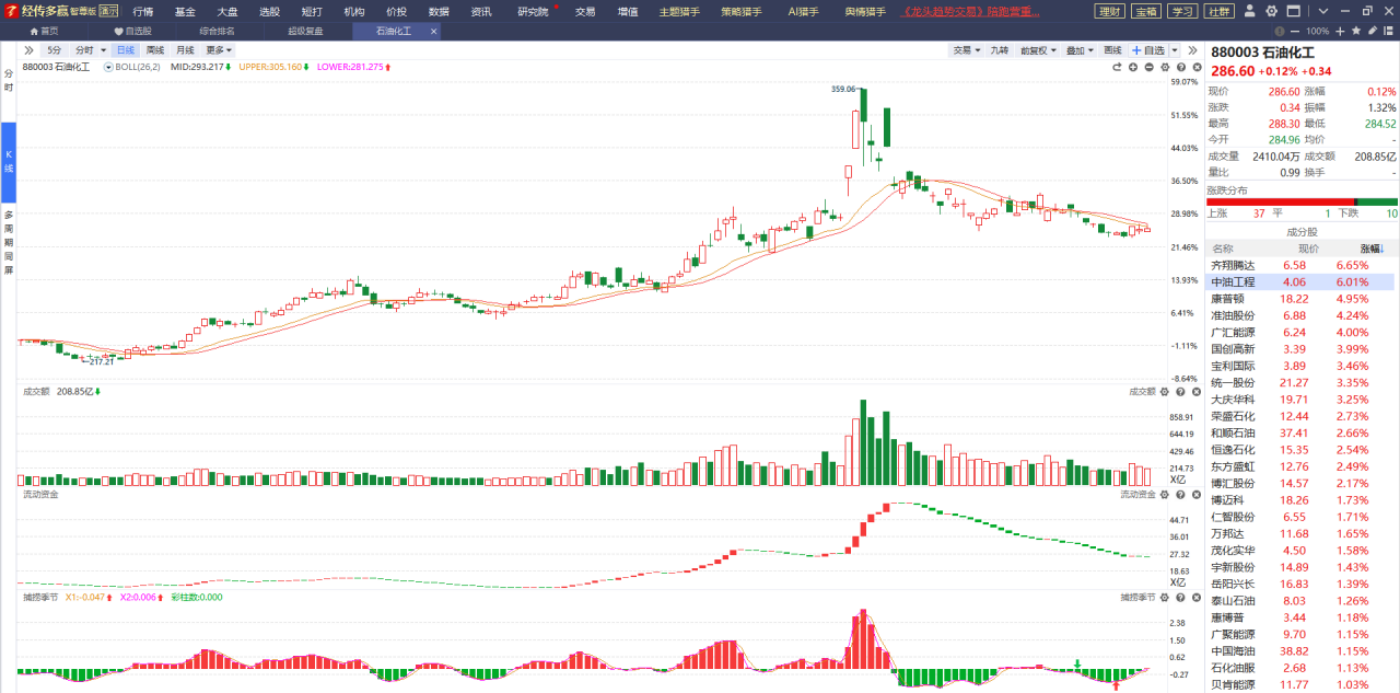 华泰证券表示,2月28日以来,中东地缘紧张局势迅速蔓延,霍尔木兹海峡运输受限致全球油气供应缺口,3月油价快速上涨,而后受美伊谈判影响,4月油价高位回落。据Wind,4月22日WTI/Brent期货价格收于93.0/101.9美元/桶,较3月末下跌8.3%/13.9%。考虑霍尔木兹海峡运输受阻以及替代路线有限,叠加中东停产油田或面临数月的复产期,以及各国出于能源安全考虑,未来或开启一轮原油、成品油等储备性补库,我们维持26年Brent原油期货均价预测为90美元/桶。国内油气开采龙头或将助力我国能源安全自主可控;中国能化供应链较海外相对完善,具备产业链完整性的龙头企业或将受益。