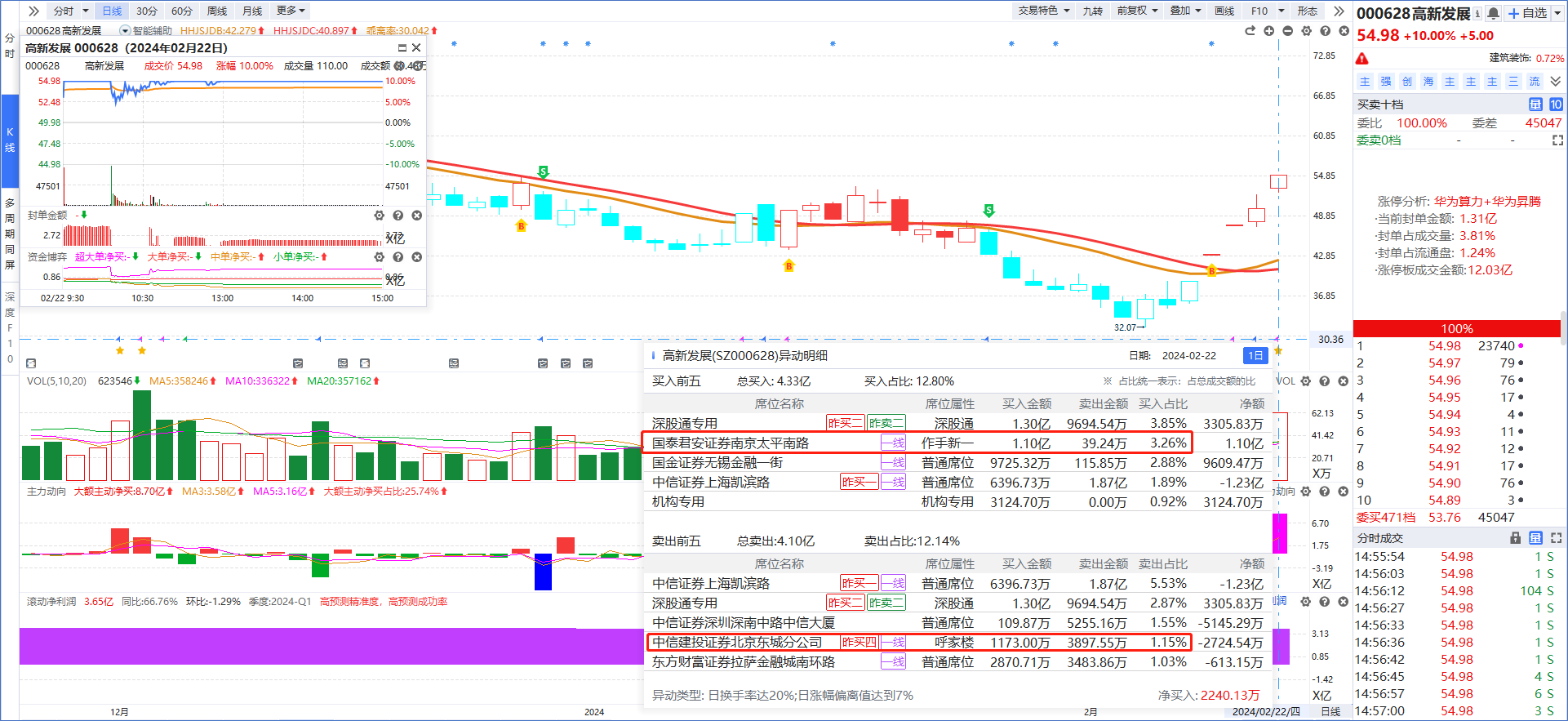 高新发展(游资接力+巨幅换手+反包涨停+华为算力)