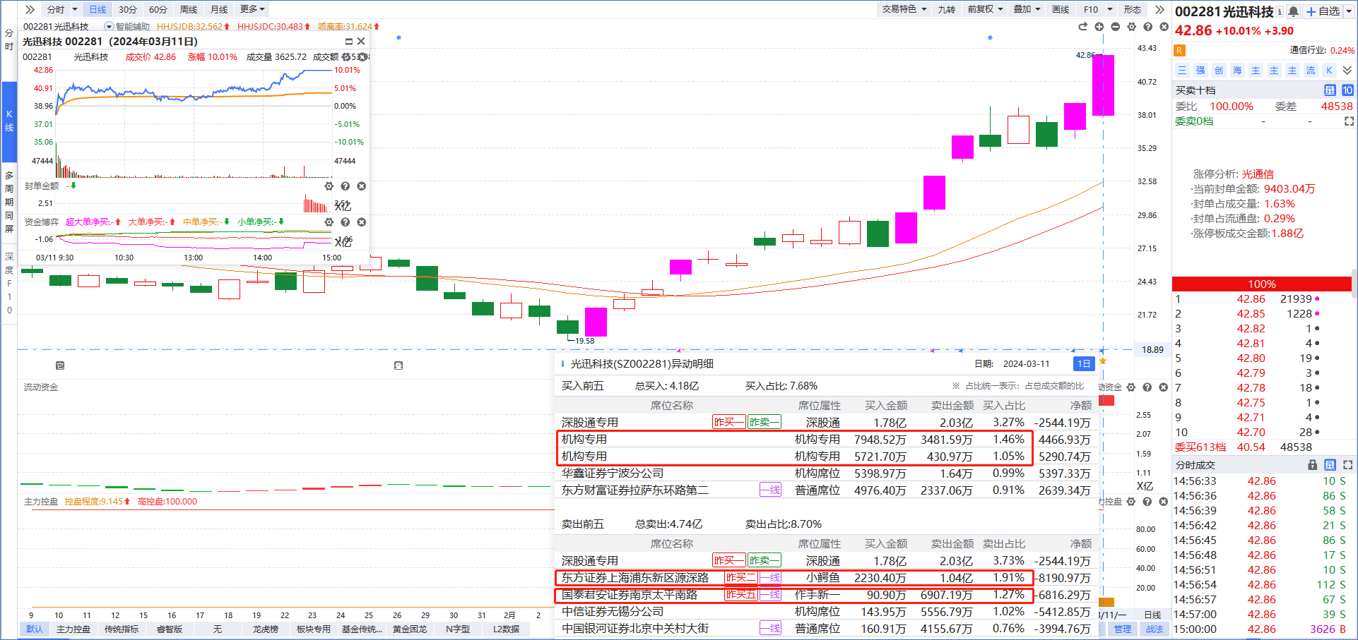 光迅科技(光模块+游资减仓+2板人气龙)