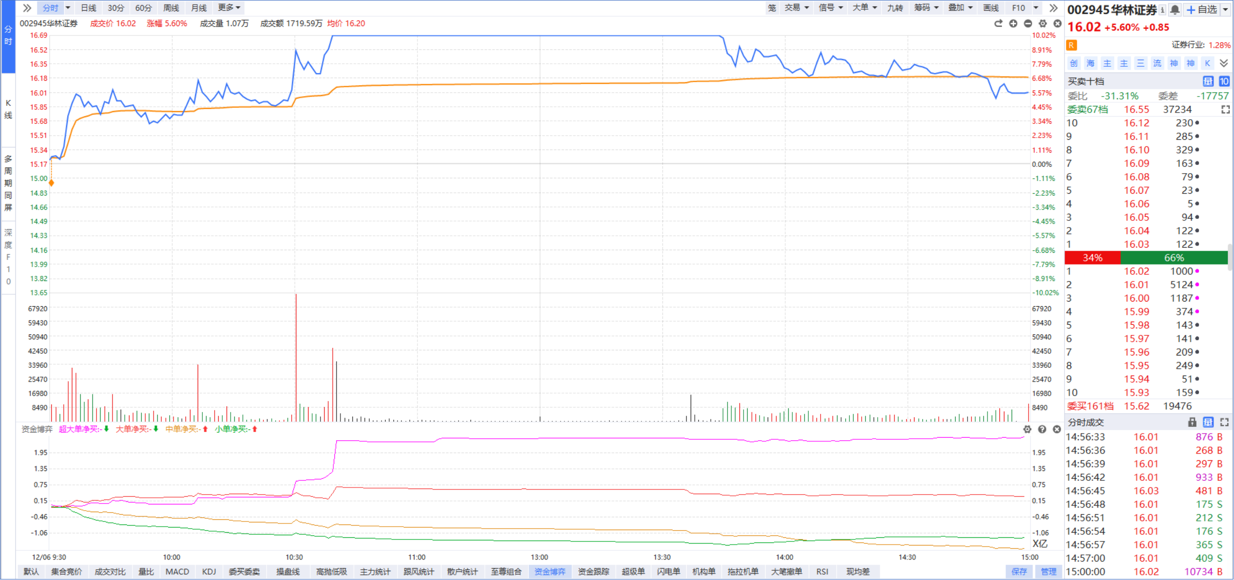 开盘金融龙头大智慧被坚持利空打击直接跌停,金融人气的银之杰、湘财股份震荡下行,在大金融表现弱势的情况下,市场开盘后表现拉胯。随后“政策超预期”的小作文出现,大金融成为抱团方向,华林证券拉板,保险的天茂集团晋级,新华保险冲击涨停,金融科技的东方财富、同花顺等水下拉升。但是午后市场震荡分化,大金融冲高回落,华林证券炸板,大智慧回封跌停。