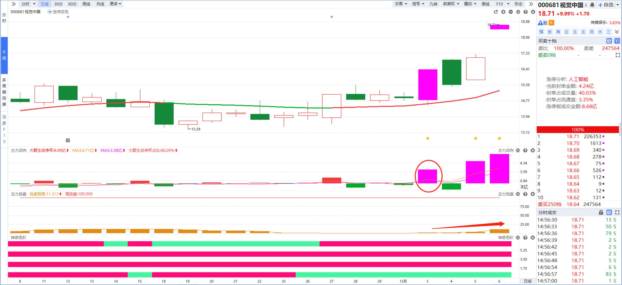 市场近期出现超预期反弹,叠加机器人高位分歧,因此市场题材炒作出现了“空档期”,这时有消息提振+调整到位+人气辨识度的AI应用就是不错的切入方向。值得注意的是,近期跌停板数量增加,短线连板的成功率+容错率降低,所以不宜追高接力,等待板块人气股的反包机会更好(主力动向爆量+主力控盘增加)。