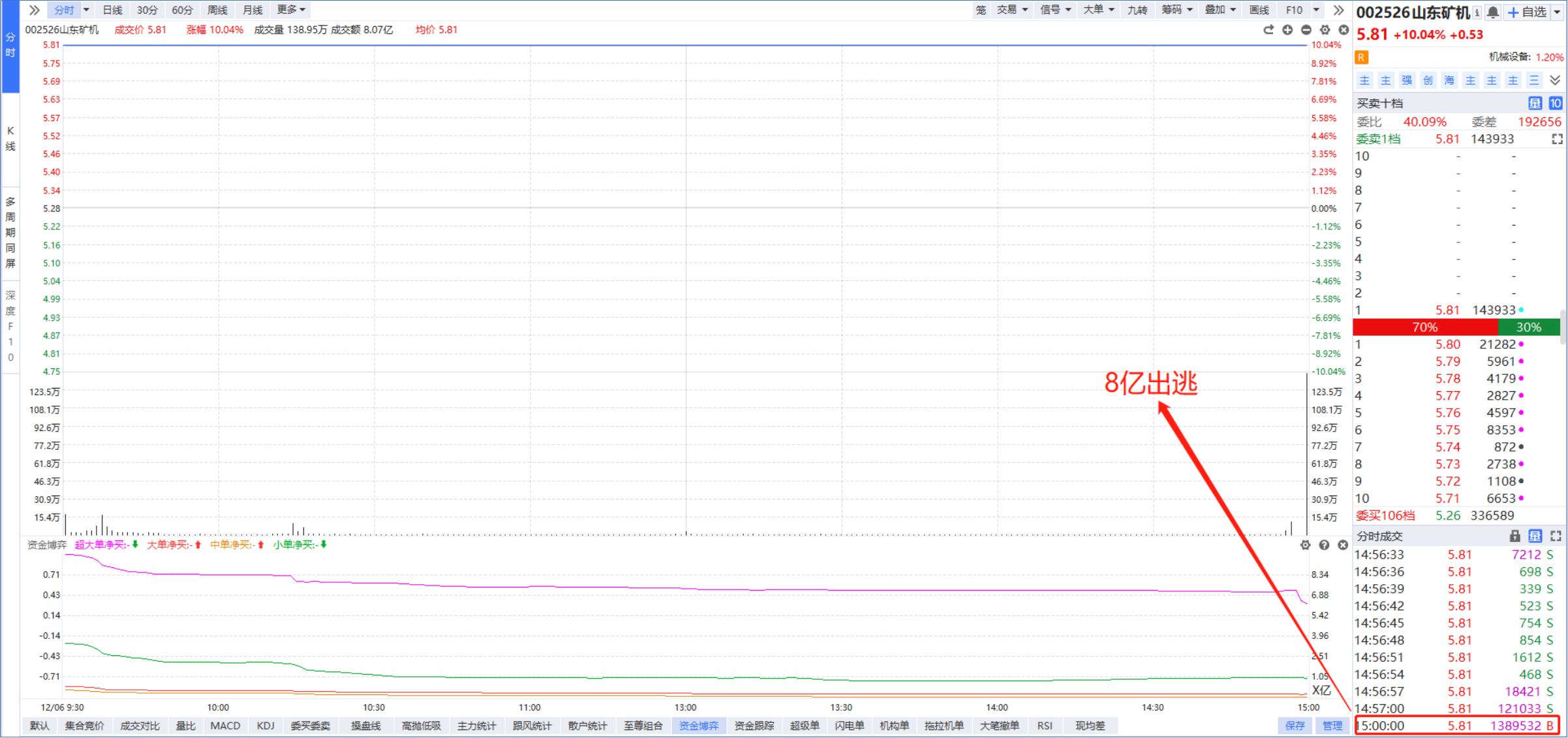 上周五机器人全天分化,不仅出现了漳州发展的跌停板负反馈,并且人气龙头的山东矿机爆量抢跑,在短线题材初步分歧阶段,不宜进场接力。明天如果山东矿机继续顶死一字,那么机器人概念还有被捞起的可能,可一旦不及预期,有持仓机器人股的朋友注意冲高降低仓位。