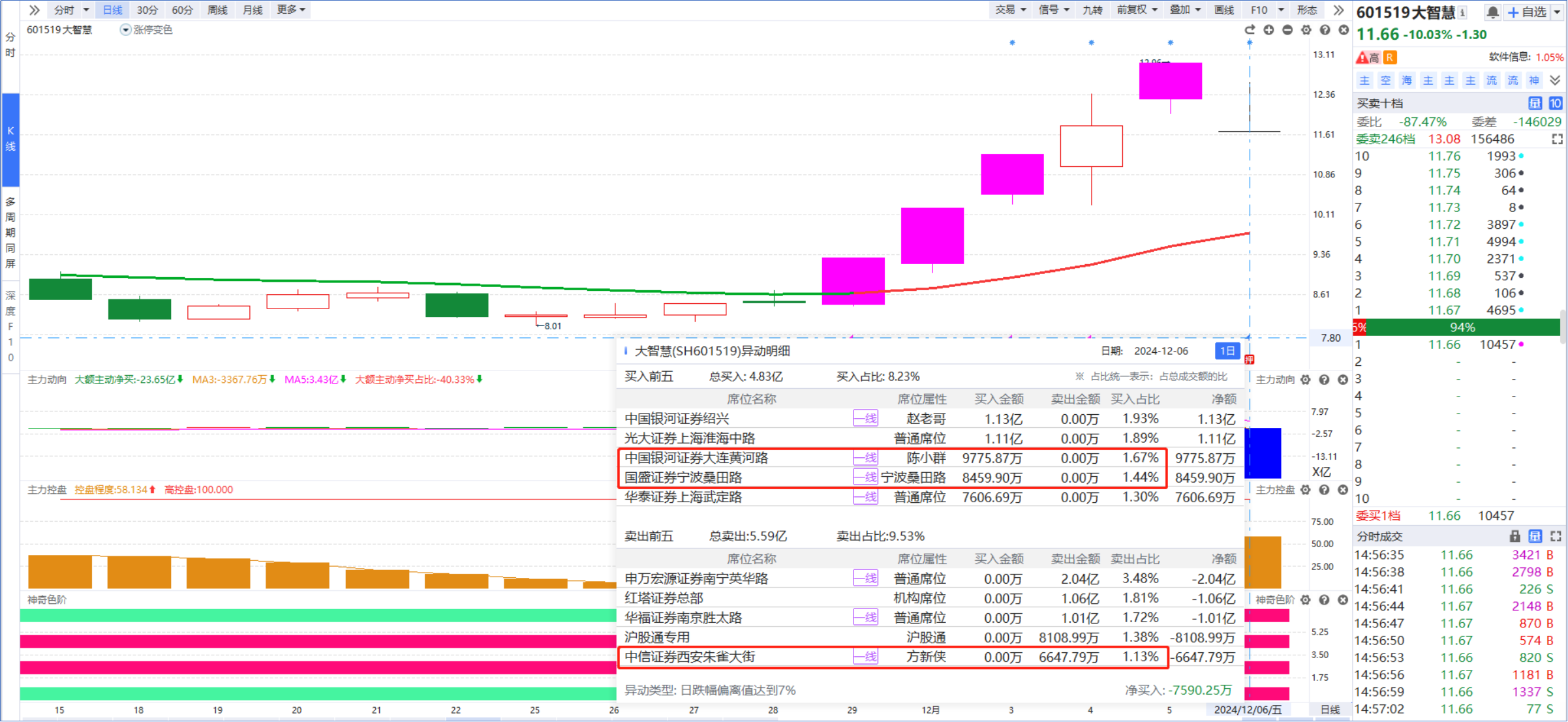 今天机构砸盘跨境通,宁波桑田联手陈小群翘板大智慧失败,小鳄鱼顶板中公教育。
