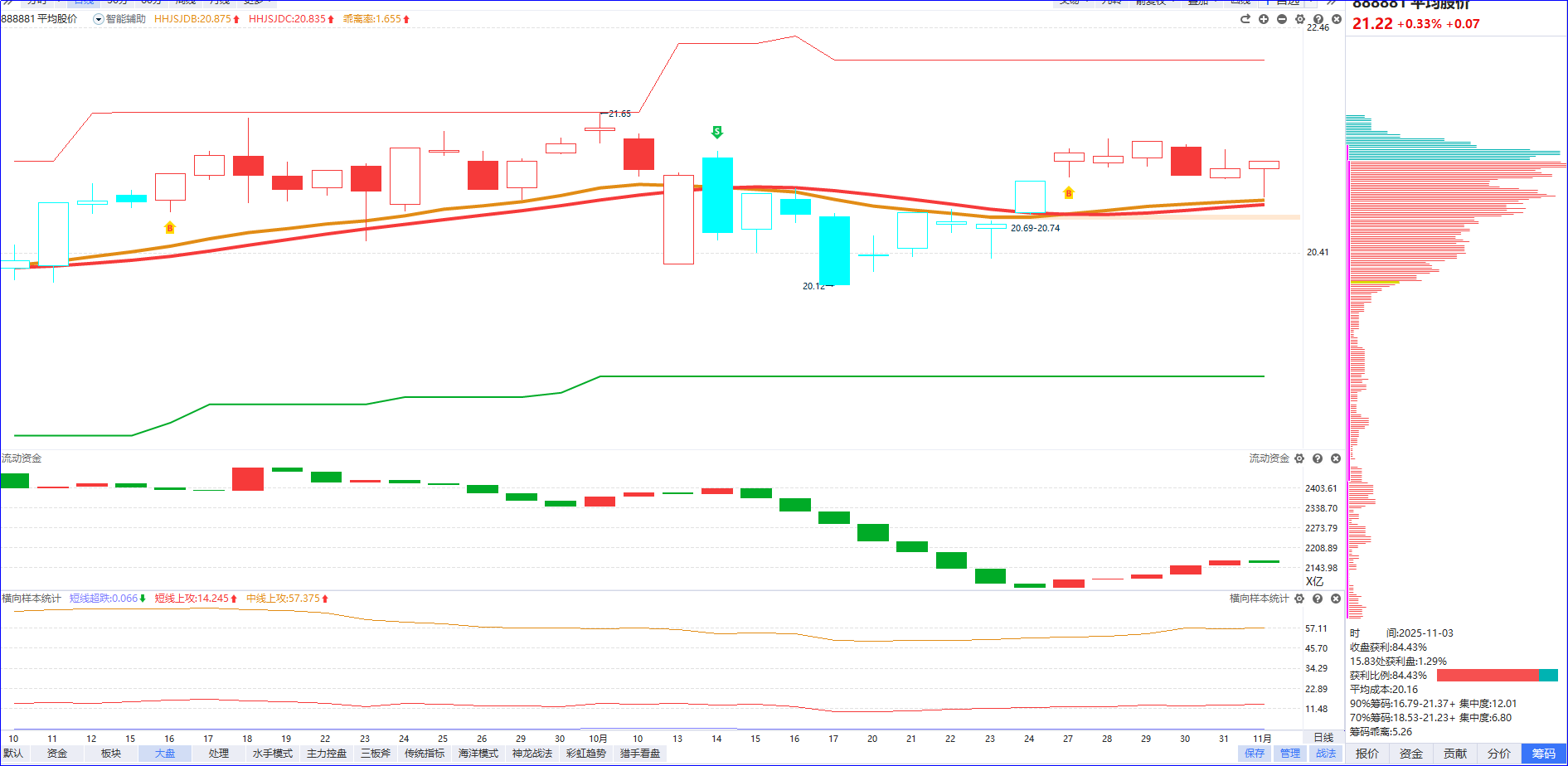 从软件信号看,今日市场量能显著收缩,全市场成交额较前期减少2000亿,总量维持在2.11万亿附近,流动资金触发翻绿。日内行情呈现明显分化,上午市场整体处于杀跌态势,情绪一度承压;但午后资金流向发生关键转变,科技板块成为资金回流的核心方向,CPO、存储芯片等前期调整板块率先企稳反弹,带动市场情绪显著回暖,最终推动午后市场氛围明显好于上午。