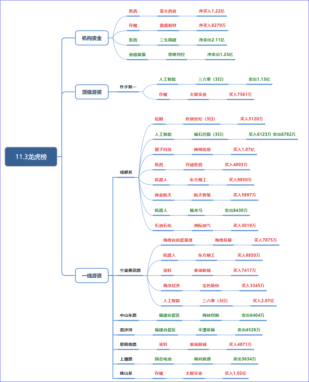 其他:成都系买入神州信息(量子科技)1.07亿、航天智装(商业航天)5897万、洲际油气(石油石化)5019万。宁波桑田路买入海南发展(海南自贸区)7875万、宝色股份(海洋经济)3345万;中山东路、流沙河卖出福建自贸区标的(海峡创新、平潭发展)。资金在主线之外挖掘新方向,属于游资对题材补涨或预期差的尝试,反映市场存在轮动找机会的情绪。