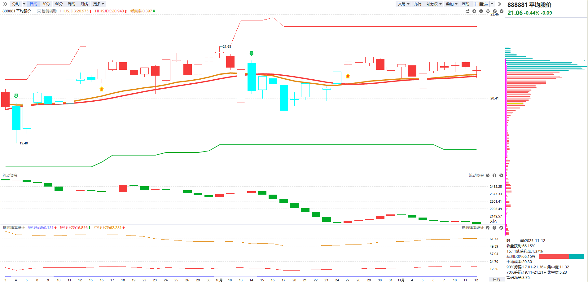 周三市场量能收缩500亿,总量回落至1.95万亿附近,平均股价流动资金翻绿,反映市场整体交投情绪趋于谨慎。当日盘面呈现极致分化格局:一边是防御性板块逆势走强,大消费、医药、银行等板块表现突出,其中农业银行再度刷新高点,单日大涨3.5%,成为防御阵营的核心标杆;另一边则是市场普跌,一度近4000只个股处于绿盘状态,批量标的跌至60日均线或近几个月低位,弱势特征明显。尾盘阶段,资金开始尝试抄底,AI硬件与锂电板块获资金小幅回流,推动盘面从极致分化向相对均衡状态修复,收盘时市场情绪略有缓和。值得注意的是,近期活跃板块及标的波动幅度持续加大,且走势随机性与无序性增强,资金轮动节奏加快,难以形成明确主线。从当前大盘格局来看,指数呈现可上可下的震荡特征,此时不宜盲目激进,更适合保持耐心,等待市场明确方向后再择机重点参与,以规避当前波动加剧带来的不确定性风险。