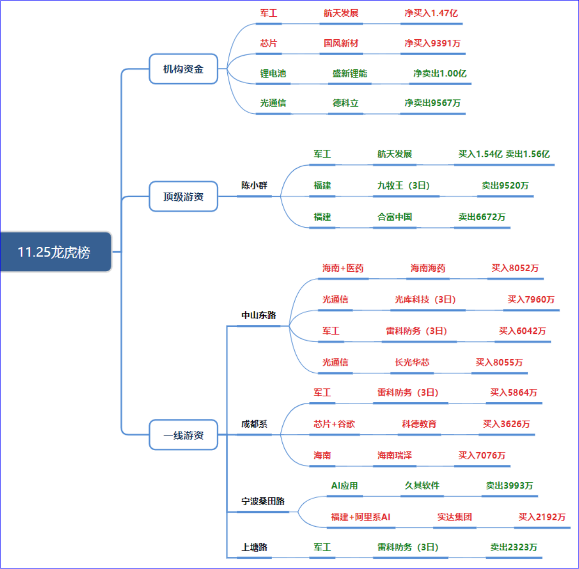 军工:中山东路、成都系分别买入雷科防务6042万、5864万;陈小群卖出航天发展(军工)、上塘路卖出雷科防务。军工是资金博弈的焦点,但已有游资开始止盈,属于有热度但分歧加大的板块。