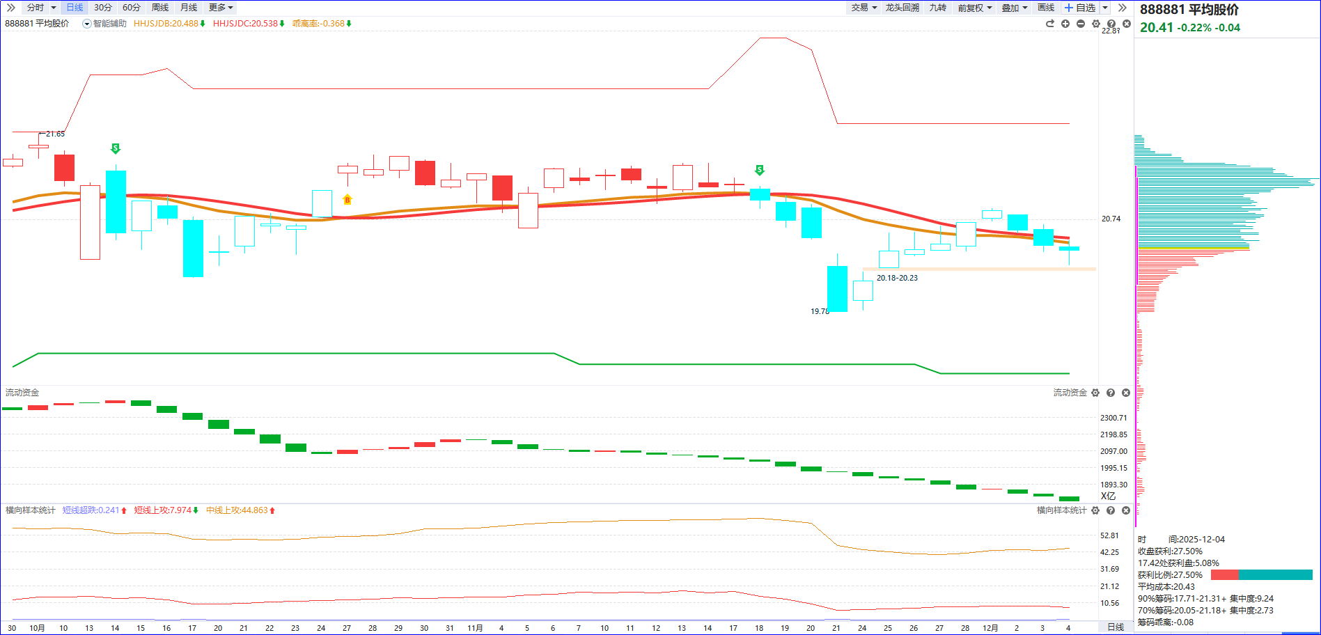 除了商业航天与机器人这两大焦点板块外,今日盘面上其余热点均以零散进攻为主,缺乏明确的联动效应与持续爆发力。综合来看,当前大盘正处于11月24日上涨行情后的回踩下跌末端阶段,从量能萎缩、探底回升的走势来看,后续持续杀跌的动能已明显不足,指数随时可能进入企稳阶段。不过需注意的是,当前盘面仍处于较为混沌的状态,在缩量市场环境下,多数主题性机会难以形成有效延续性,因此操作上建议保持耐心,等待大盘流动资金持续翻红、市场交投情绪显著回暖后,再逐步提升操作积极性更为稳妥。