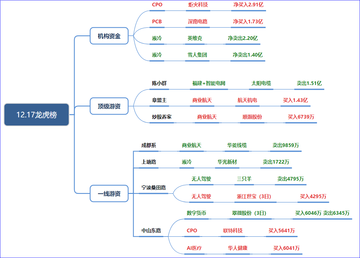 其他板块以卖出为主,热度偏弱:智能电网--陈小群卖出太阳电缆(1.51亿),板块资金离场,热度降温;液冷/无人驾驶--上塘路、宁波桑田路均为卖出(仅宁波桑田路小仓位买入浙江世宝),这两个板块属于局部活跃+资金兑现;数字货币/ CPO/AI医疗:中山东路呈现买卖交织+新买入,但资金量(6000万)远低于商业航天,属于小范围试错,暂未形成合力。
