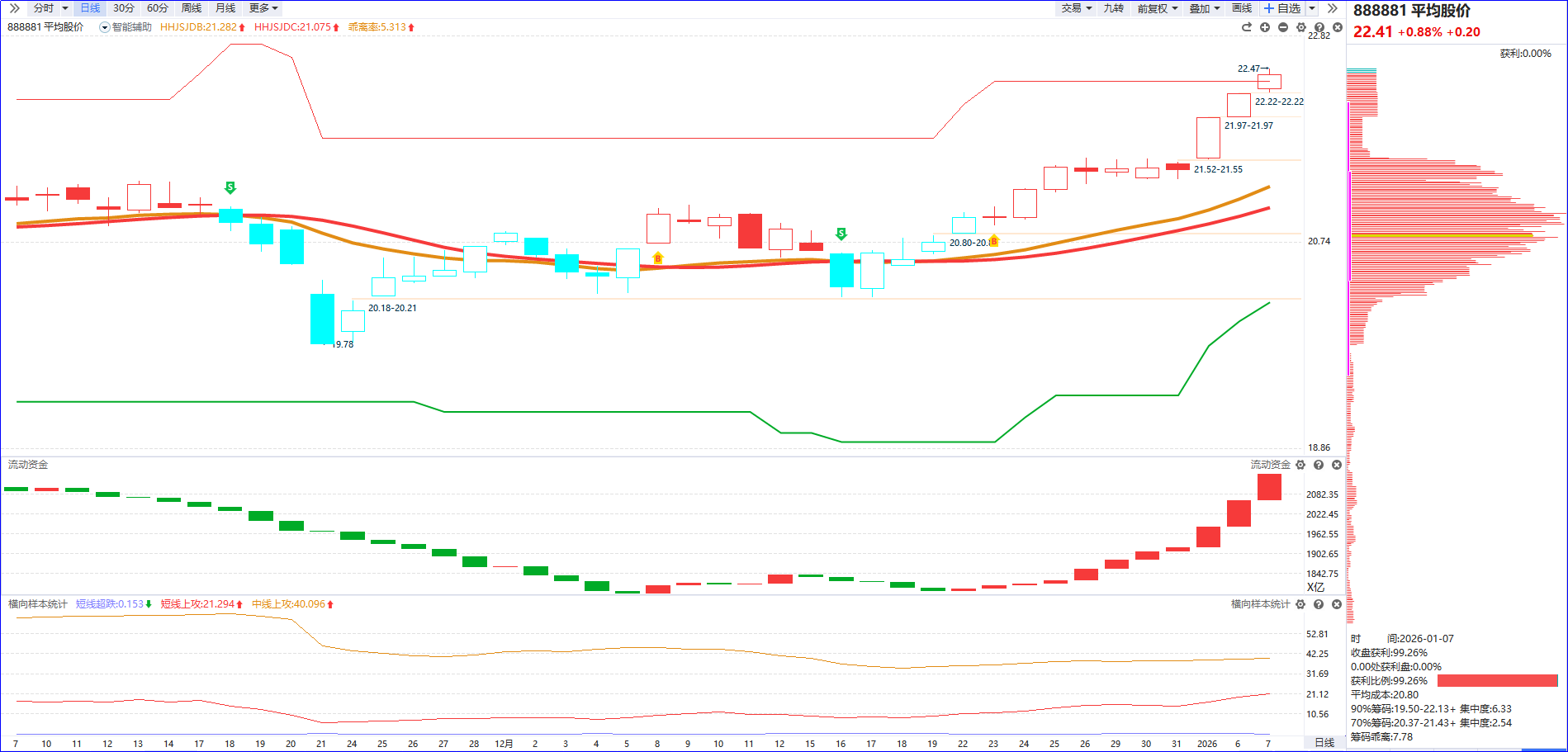 周三大盘整体延续向好态势,平均股价流动资金持续翻红,熊线上移,横向样本的短线上攻与中线上攻指标同步上行,市场维持做多情绪。