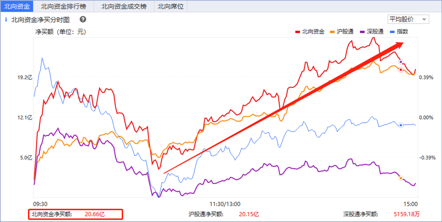 今天大盘小幅高开后探底回升,午后震荡走强。今天北向资金的流入给了市场很大的信心,现在我们的市场主要还是围绕着“北向资金”在转。前面和大家强调了,大盘想要突破前期高点,必须满足两个条件其中一个:第一是两会主题的确立,市场量能回升,第二是北向资金引导国内机构。目前两个条件都已经满足(国企价值重估预期是重中之重),所以上证指数才能放量突破前期压力线,后面市场有望开启“指数牛”行情。