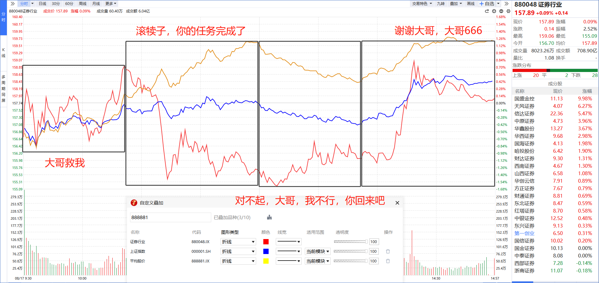 午后,市场终于明白,现在只有拉券商才能就救得了市场,于是短线资金再次抱团券商,国盛金控强势涨停,天风证券,信达证券冲板,金融科技多股脉冲。