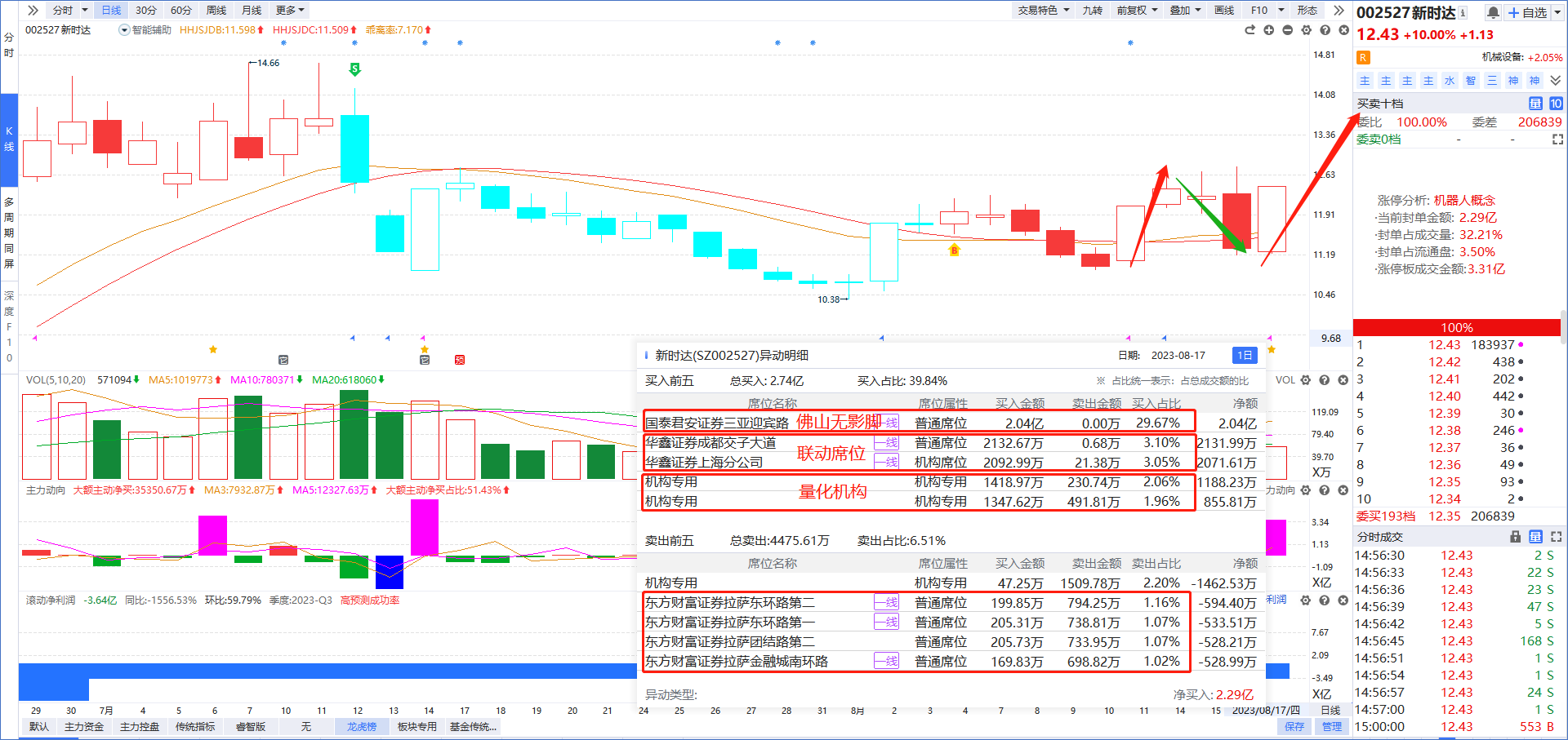 新时达(佛山无影脚一家独大+量化机构做T+拉萨藏獒做T+涨停复制+减速器龙头)