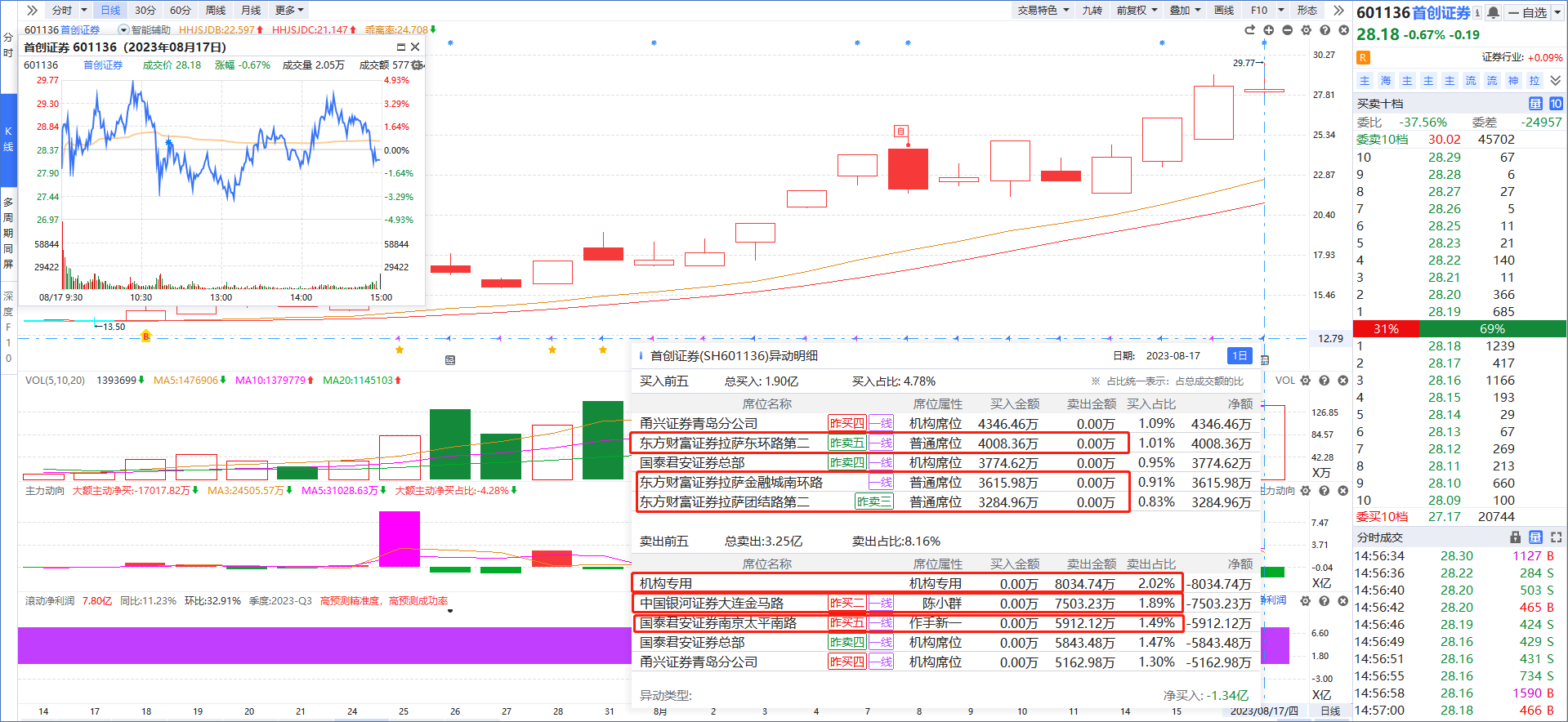 首创证券(游资清仓离场+拉萨散户接力+机构再次减仓+证券核心龙)