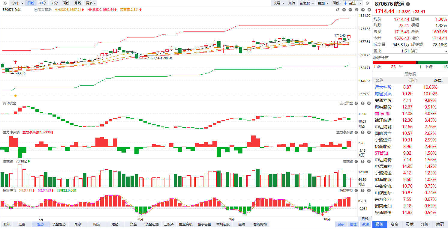 消息面上,交通运输部10月14日启动航运业、造船业及相关产业链供应链安全和发展利益受影响情况调查。