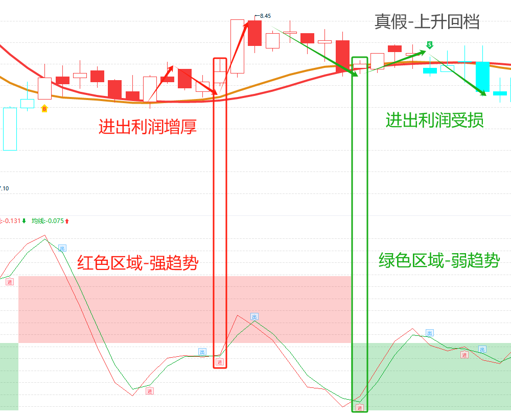 红色区域(强趋势)-股价动能足,上升波段确定性高,持仓拿波段更稳;